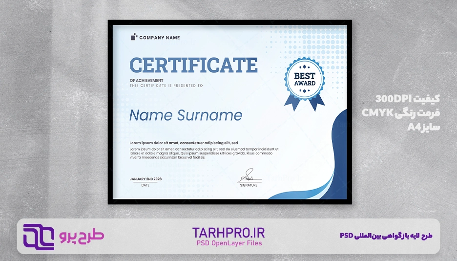 اگر به دنبال یک گواهینامه بینالمللی مدرن و حرفهای با طراحی خاص موج آبی هستید، این فایل PSD انتخابی ایدهآل برای شماست.